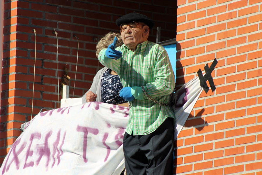 La segunda obra del día también tendrá como protagonistas a personas mayores. ‘Kale Gorrian’, de Barsanti Teatroa, narra la historia de una pareja de ancianos que se enfrenta a un desahucio y la reacción del barrio frente a la policía y las intenciones del banco. El iurretarra Juanjo Otero se encarga de uno de los papeles protagonistas de este trabajo, que ganó la Mención Especial del jurado en la Umore Azoka 2018 de Leioa.