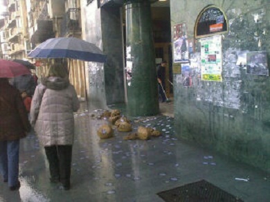 Por cierto, no se si a la gente que le ha parecido violenta la accion han entendido que las bolas de tierra se arrojaron contra la fachada, como quizas se puede entender de la redaccion de esta noticia, pero yo tambien he visto lo que ha pasado y la tierra la han tirado al suelo, o sea que no se a que viene que en la noticia se diga si habia gente o no en el establecimiento cuando con esa accion no se ha puesto en peligro la integridad de nadie ni creo yo que fuese esa la intencion, asi que me parece que la redaccion de la noticia (no se si intencionadamente o no) esta un poco dirigida hacia cierto punto de vista a todas luces incorrecto.
