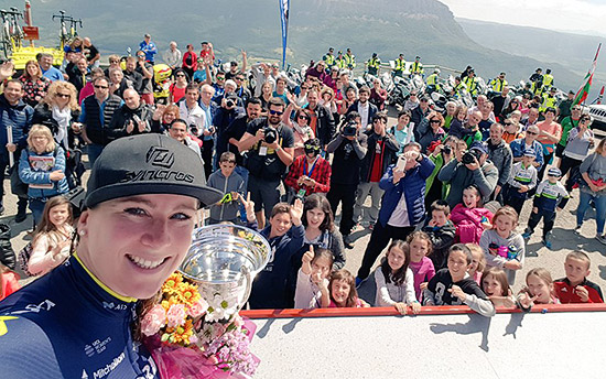 Van Vleuten se hace un ‘selfie’ en San Miguel de Aralar.