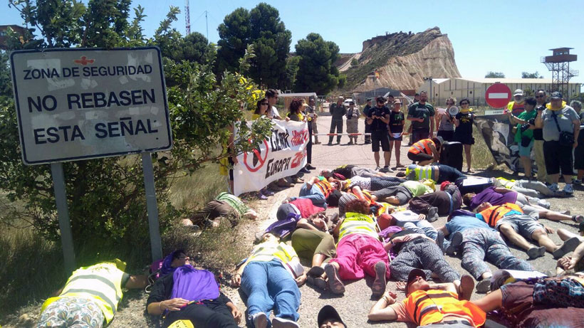 Cuatro autobuses han partido a primera hora de esta mañana de Euskal Herria con alrededor de 200 personas. La primera parada ha sido en el polígono de tiro de las Bardenas para protagonizar una performance con la que han querido cuestionar que Euskal Herria sea también “cómplice” en la crisis de las refugiadas y los refugiados.