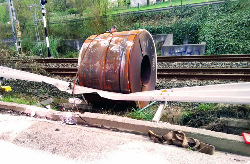 Las bobinas de fleje tenisn que ir en el agujero por ley. No en dos palitos como las llevan. Alguien tenía que tomar datos. A que están esperando?, A que muera alguien por aplastamiento. Para unas cosas seguridad y para otras nada. La autopista de pago.