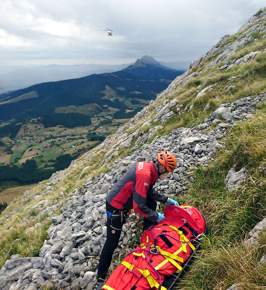 El equipo de Vigilancia y Rescate de la Ertzaintza ha recibido el aviso hacia las 12.00 horas de hoy, alertando de la caída sufrida por la víctima durante el descenso del monte. Debido a la complicada ubicación en la que se encontraba el montañero, se ha optado por recurrir a la aeronave para realizar el rescate, a pesar de las heridas no parecían revestir gravedad, según los servicios de emergencia.