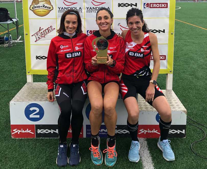 Iraia García se impuso con autoridad este domingo en el Campeonato de Euskadi Master de cross disputado en Laudio. La zornotzarra fue acompañada en el podio por sus compañeras de equipo Eguzkiñe Aspiazu y Ángela Tejedor, obteniendo un pleno del Bilbao Atletismo en la prueba.