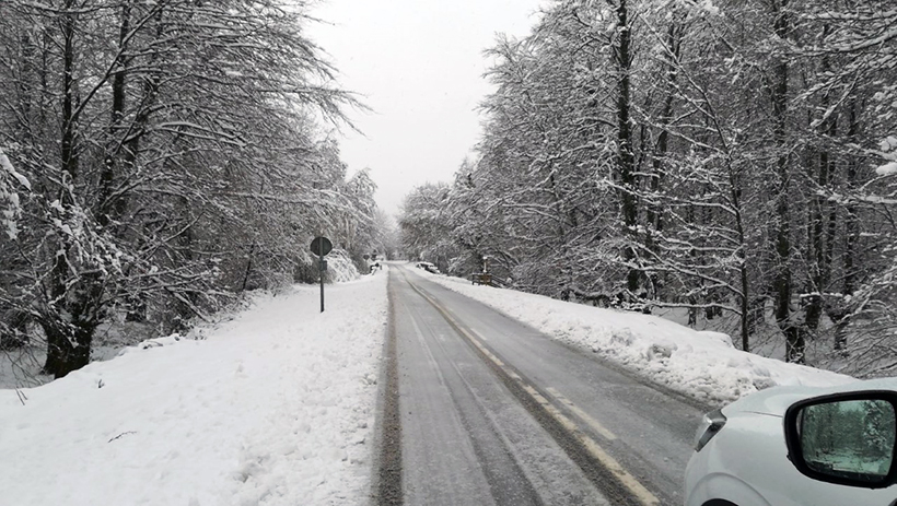 Aspecto que presentaba la carretera a Urkiola esta mañana. Foto: E. P.