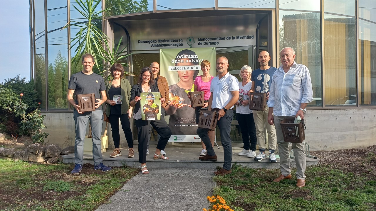 La Mancomunidad de Durangaldea ha presentado esta mañana en Iurreta la campaña ‘Está en tus manos: residuo o tierra’ que busca sensibilizar a vecinas y vecinos sobre la importancia de utilizar el contenedor marrón e incrementar el compostaje de la fracción orgánica, que permite convertir el residuo en tierra para abonar jardines y huertos. Como novedad, un punto de información itinerante recorrerá desde la semana que viene Abadiño, Atxondo, Elorrio, Garai, Iurreta, Izurtza, Mañaria y Zaldibar para ofrecer información y facilitar el alta en este servicio.