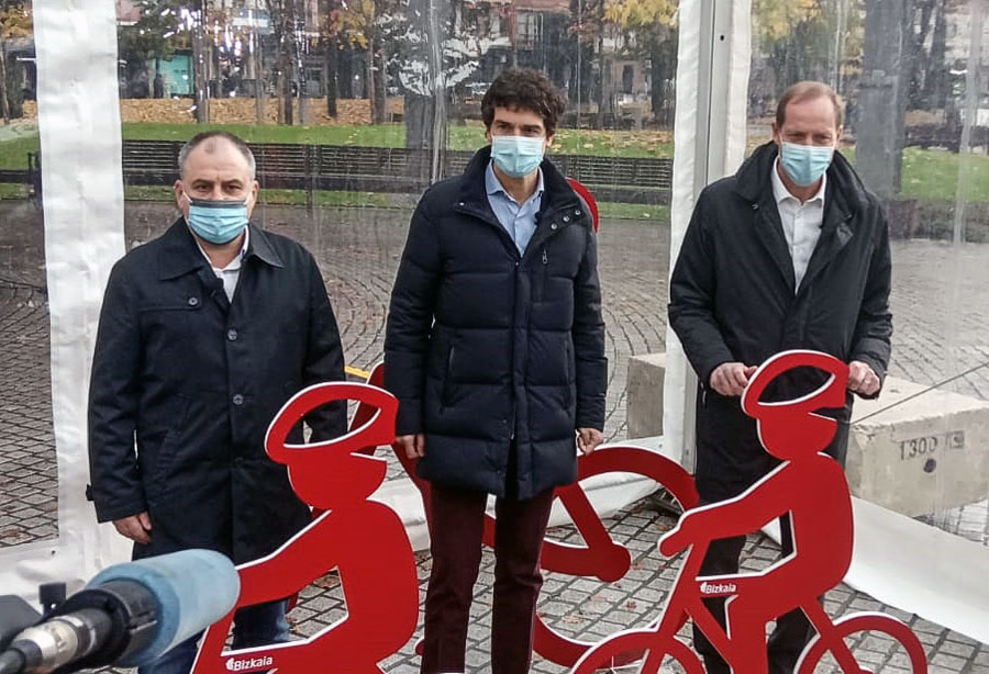 El alcalde de Amorebieta, Andoni Agirrebeitia, junto al diputado general de Bizkaia, Unai Rementeria, y el director del Tour, Christian Prudhomme, el pasado noviembre.