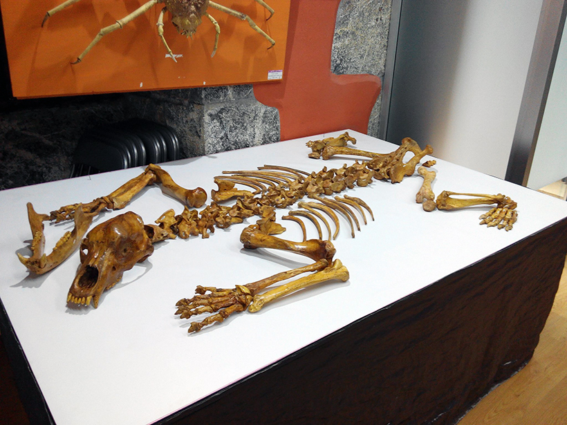 La representación de un esqueleto de una hembra de oso de las cavernas destaca en la muestra.