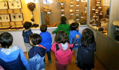 Un grupo de escolares en el Museo de Ciencias Naturales Hontza de Mañaria.