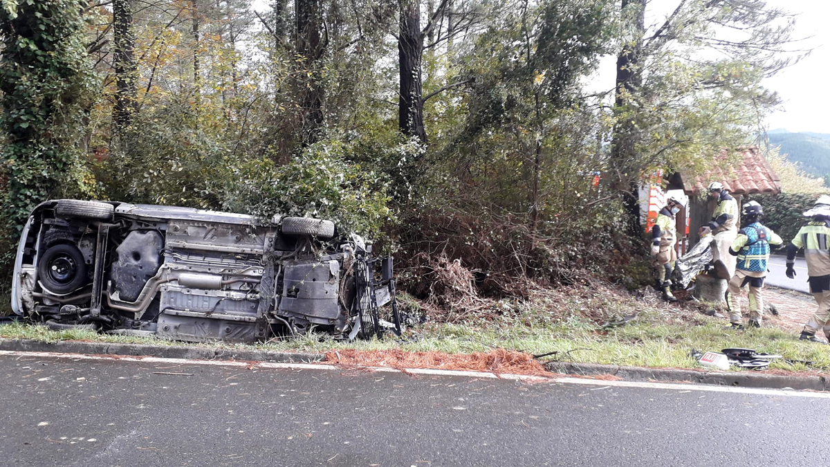 Un hombre resulta herido tras volcar con su furgoneta en Garai