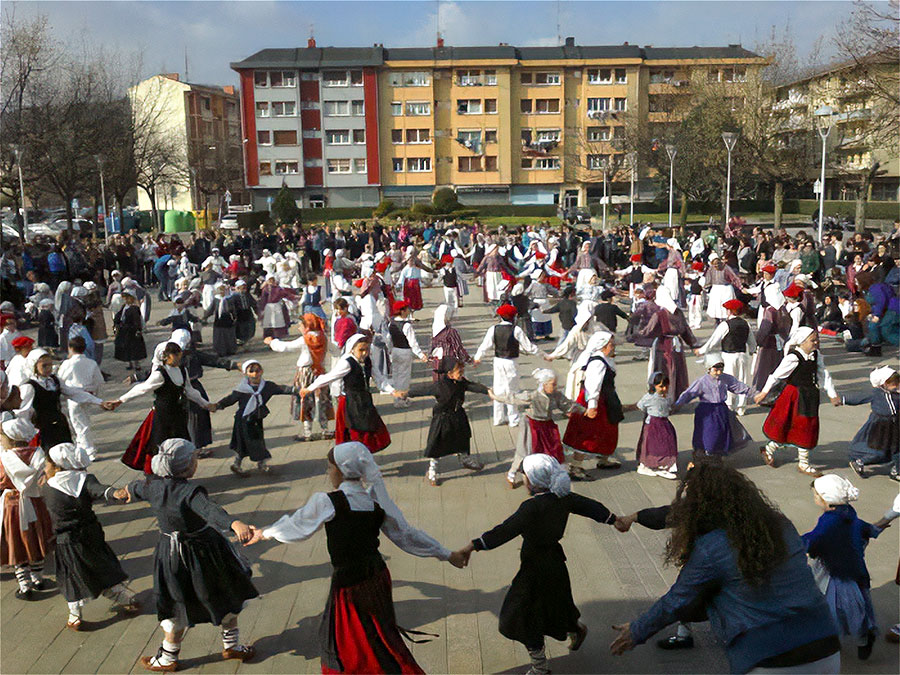 La jornada festiva comenzará con un pasacalles en el que los distintos grupos de dantzaris, cuyas edades oscilan entre los 3 y los 16 años, bailarán durante el recorrido. A su término, los participantes harán una parada en sociedades gastronómicas, bares, restaurantes y casas de vecinos para disfrutar de una comida y reponer fuerzas.