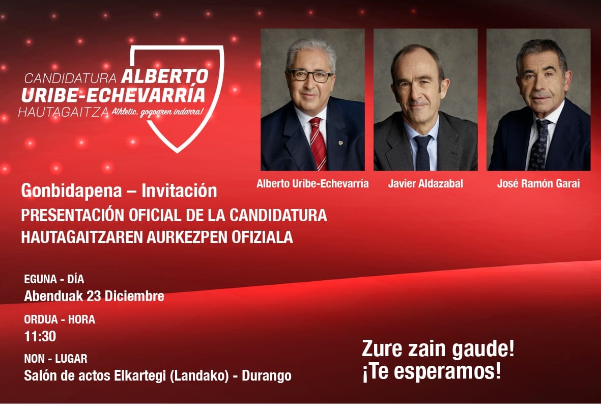Las elecciones al Athletic llegan a su recta final. Socios y socias deberán elegir entre Alberto Uribe-Echevarría y Aitor Elizegi como nuevo presidente el próximo jueves, 27 de diciembre.
