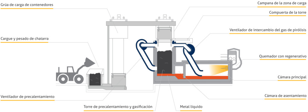 La nueva instalación complementará al horno rotativo que se instaló en Amorebieta en 2017 con una de las tecnologías más innovadoras del mundo, basada en una carga superior que permite fundir diferentes tipos y formas de chatarra. Durante el proceso de fusión, que dura 4 horas, cualquier material lacado se decapa de manera controlada y gracias a su funcionamiento continuo se optimiza la productividad.