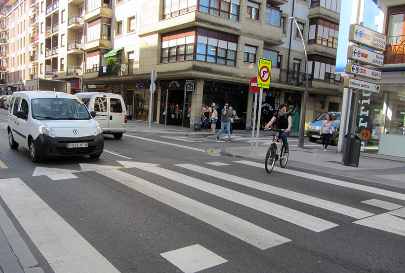 La foto no es la más adecuada. El ciclista está cometiendo una infracción.
