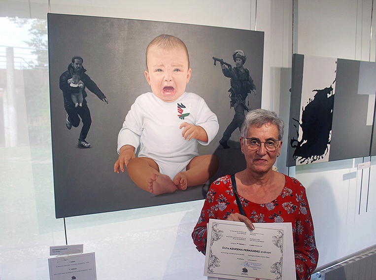 En este cuadro, la artista quiso pone el foco en la violencia que sufre la sociedad civil palestina y, especialmente, la población infantil. Fernández forma parte de la Asociación Artística del Duranguesado y ha ganado el certamen en distintas ediciones y categorías.