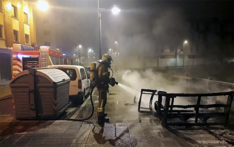 Aunque el fuego fue apagado en primer lugar por agentes de la Policía Municipal que utilizaron un extintor, los bomberos de Iurreta procedieron a refrigerar los restos calcinados del mobiliario, según han indicado fuentes del Departamento de Seguridad del Gobierno Vasco.