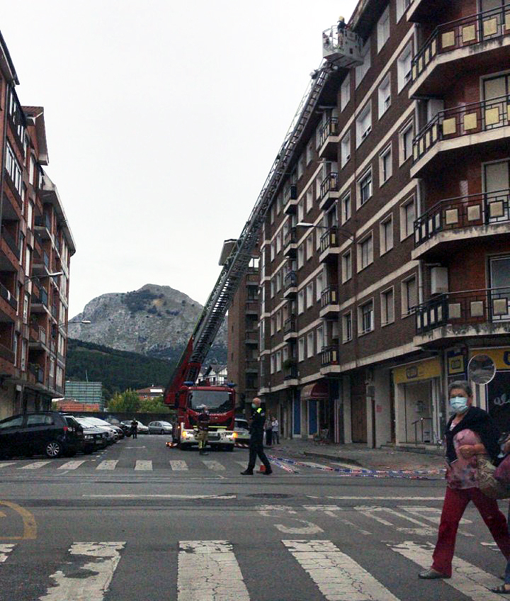Bomberos del parque de Iurreta se han desplazado este mediodía a Durango a sanear parte del tejado de un edificio de la calle Erretentxu desde el que habían caído cascotes.