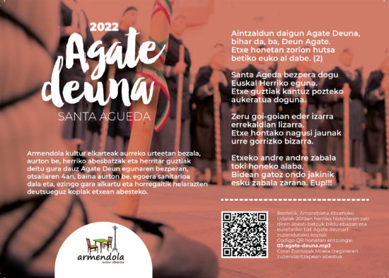 Aurreko urteetan Santa Ageda bezperako koplen kalejira bertan behera geratu bazen Covid19aren pandemiagatik, Zornotzan eta Elorrion berriro ohiko abestiak entzuteko aukera egongo da. Hala ere, formatu desberdinak aukeratu dituzte herri baten eta bestean.