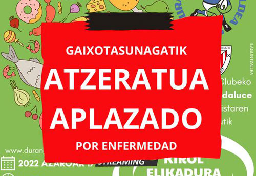 Durango Rugby ha anunciado el aplazamiento por enfermedad de la charla con la nutricionista del Athletic Club.