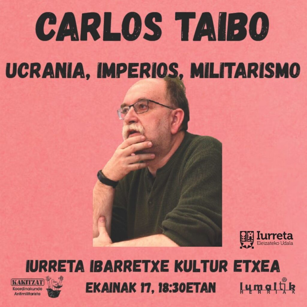 Ibarretxe Kultur Etxea de Iurreta acogerá esta tarde una charla titulada ‘Ucrania, Imperios, Militarismo’, a cargo de Carlos Taibo. escritor y editor experto en relaciones internacionales y movimientos sociales como el 15M o el movimiento anarquista. La cita es a las 18:30 horas.