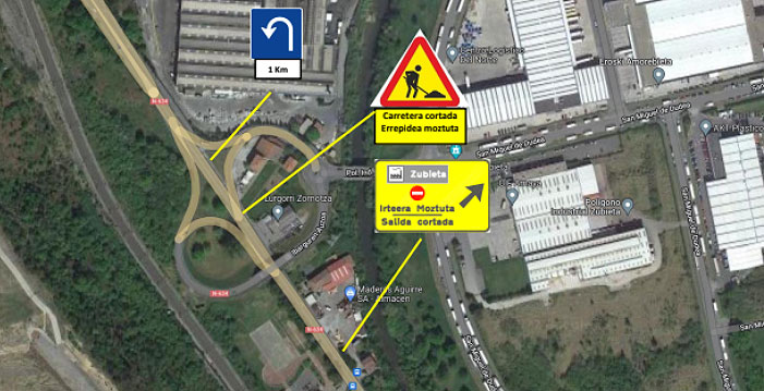 Debido a las obras que se están llevando a cabo en la carretera N-634, entre Amorebieta-Etxano y Euba, se procederá al cierre de los ramales de incorporación y salida del polígono Zubieta desde la carretera N-634, a partir de la jornada de hoy.