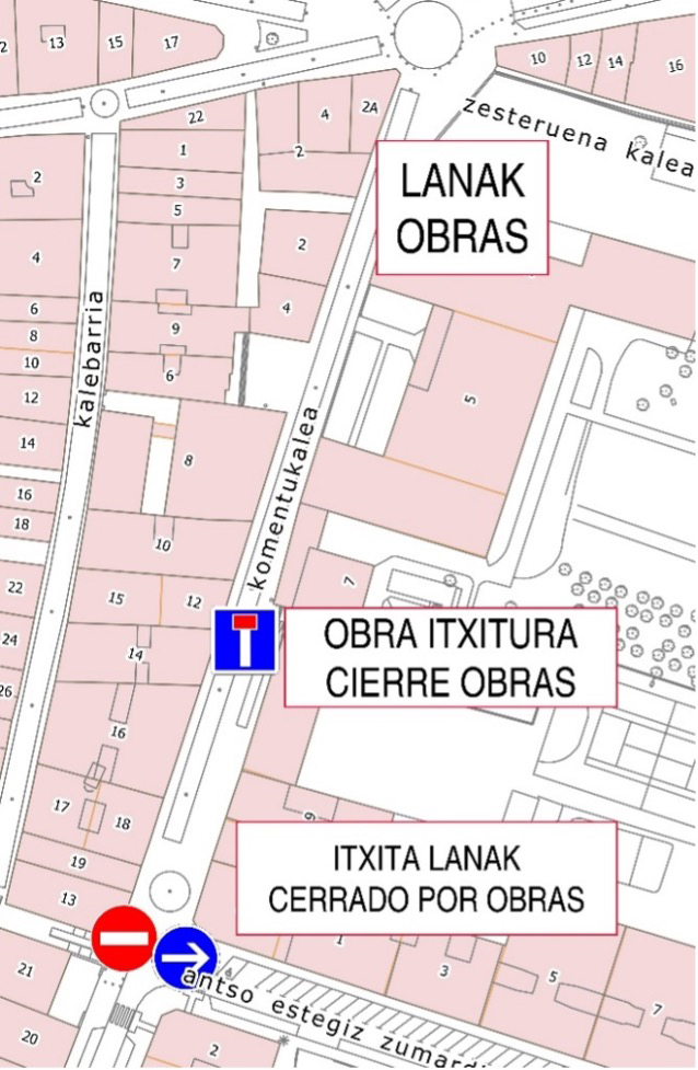 Corte de tráfico temporal en Komentukalea desde mañana