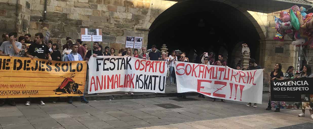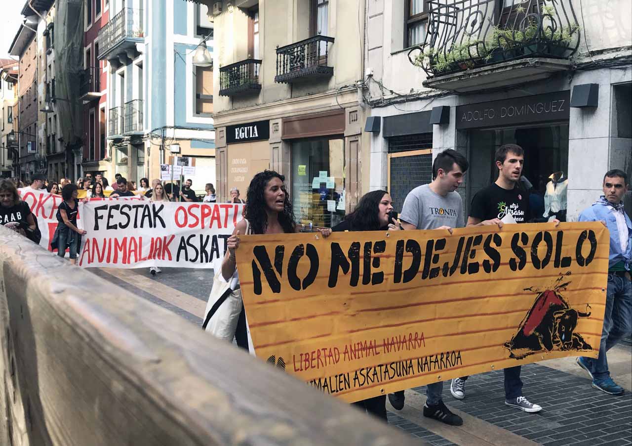 La manifestación ha recorrido diversas calles del Casco Viejo sin ningún tipo de incidente al grito de “Jaiak ospatu, animaliak askatu”, “fiesta nacional, terrorismo cultural” o “cómo os puede divertir, ver a un animal sufrir”. “La gente ha sido muy respetuosa”, han apuntado desde la organización.
