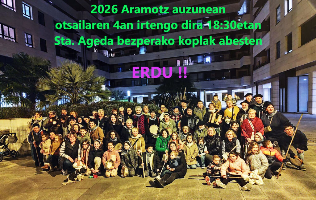 Armendola Kultur Elkartea vuelve a reunir esta tarde a los grupos corales de Amorebieta-Etxano y a los vecinos y vecinas que se animen con motivo de Santa Águeda.  La celebración comenzará a las 18:30 horas por las calles de la localidad .