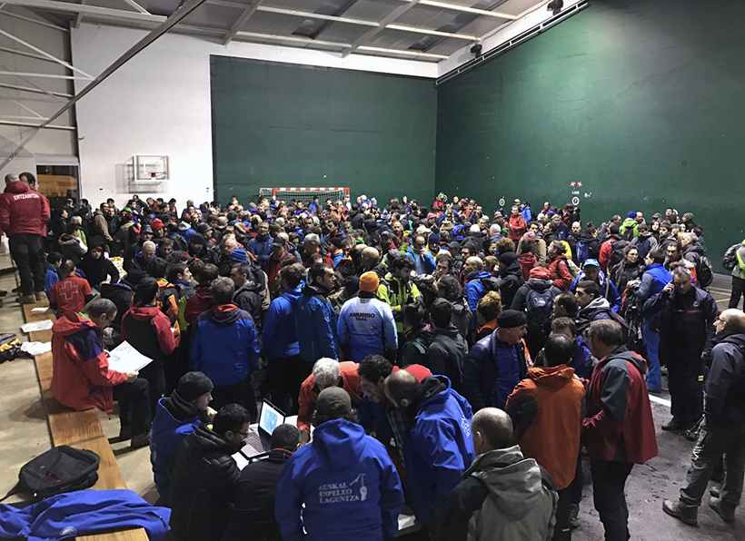 Efectivos de la Ertzaintza, DYA, Bomberos de Bizkaia y Álava, Cruz Roja, espeleólogos y perros de rescate se afanan desde entonces por tratar de encontrar al joven. La búsqueda se está centrando en zonas de difícil acceso, simas y pequeños embalses, aunque la lluvia ha complicado tanto la visibilidad como el acceso a algunos puntos.