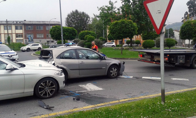 La rotonda situada frente a la comisaría de la Ertzaintza de Durango ha registrado a primera hora de esta tarde un accidente en el que se han visto involucrados cuatro coches. Como consecuencia de la colisión, las conductoras de dos de los turismos han sido trasladas al hospital de Galdakao.