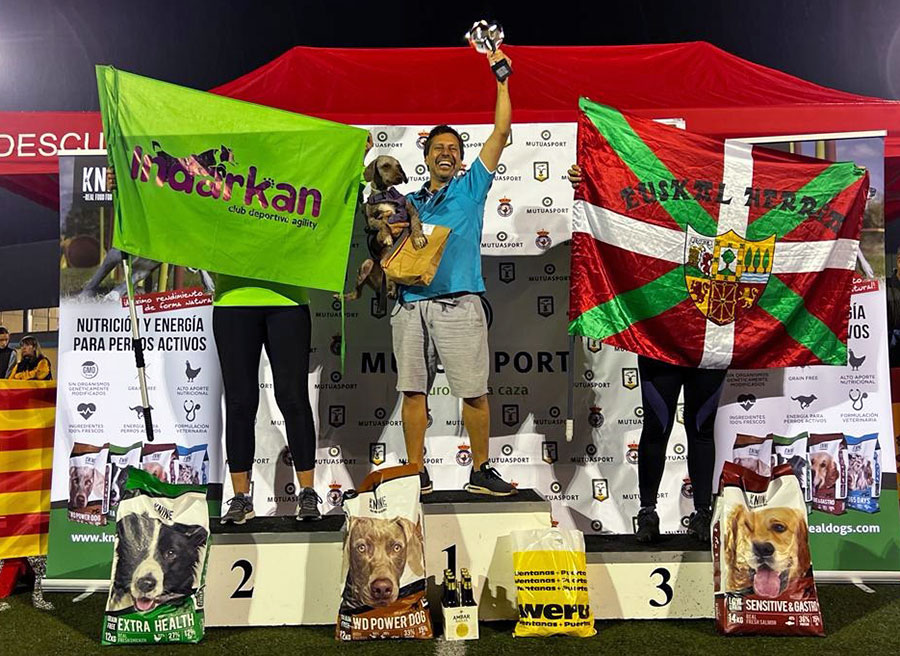 El abadiñarra Gorka Pozuelo y su perra ‘Duna’ se han alzado con la Copa de Campeones de España de agility celebrada el 31 de octubre en Aragón. El binomio logró superar el circuito de 22 obstáculos en el mejor tiempo, sin penalizaciones, superando en menos de tres segundos al siguiente clasificado.