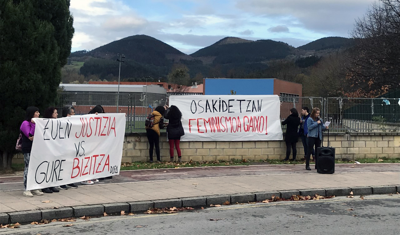 Durangoko Autodefentsa Feminista Asanblada (DAFA) planteó un recorrido con cuatro paradas simbólicas que tienen que ver con el protocolo de actuación y coordinación contra la violencia machista. La primera fue en el Juzgado de Durango, donde se volvió a denunciar la justicia patriarcal. De hecho, la manifestación partió de ese punto y en la pancarta que encabezaba la movilización podía leerse ‘Zuen justizia vs gure bizitza’.