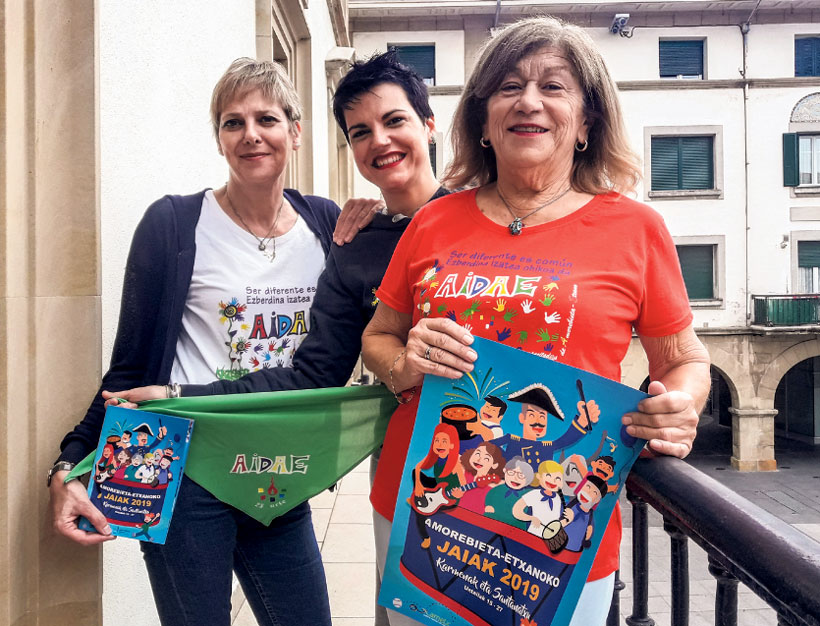 AIDAE-pregón-Karmenak-2019La labor que desde hace un cuarto de siglo desarrolla AIDAE-Asociación para la Integración de Disminuidos Físicos y Psíquicos de Amorebieta-Etxano con personas discapacitadas del municipio, ha merecido el reconocimiento de la comisión organizadora de los festejos de Karmenak al ser designada como pregonera de esta edición. La decisión supone también poner en valor la labor que desarrollan Julia Orbe, su presidenta, y en la que participan de forma muy activa Ana Mari Delgado y Esti Martín.