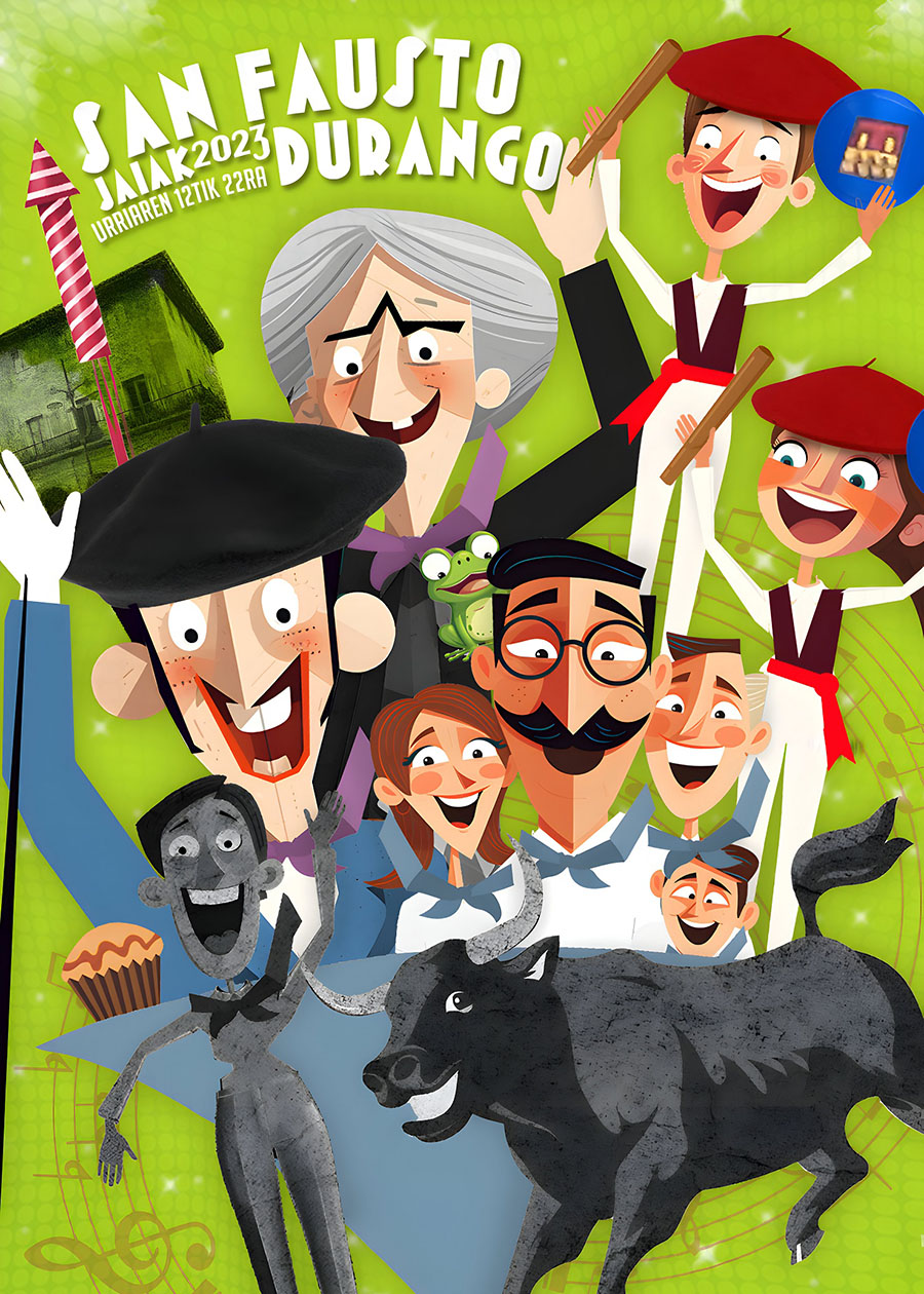 La ciudadanía durangarra puede escoger, desde hoy, su cartel favorito para ilustrar las fiestas de San Fausto de este año. La elección entre las 7 propuestas finalistas podrá realizarse de forma presencial u online hasta el próximo 11 de septiembre.