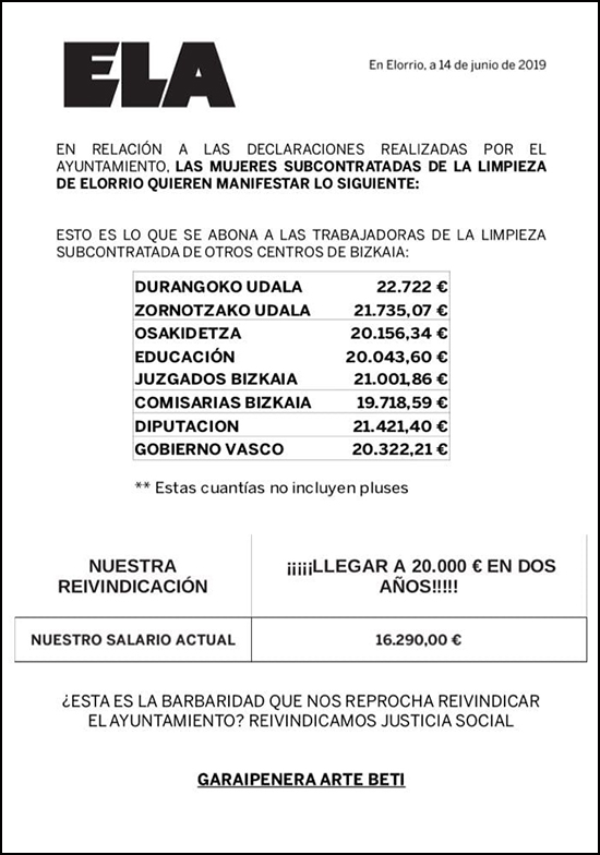 Si si, hay criterios. Claro. Las cabezas pensantes de ELA marcan el objetivo (ayto de Elorrio) y disparan sin miedo huntando a las trabajadoras con la caja de resistencia. Y seguir y seguir. En lugar de aprovechar la posibilidad de publificar los puestos (no las personas), y de utilizar este logro como ejemplo para otros pueblos. Por eso NO OS APOYA NADIE en el pueblo. Espera que nos cabreemos un poquito más los padres/madres de la escuela pública.. que estamos bastante comedidos