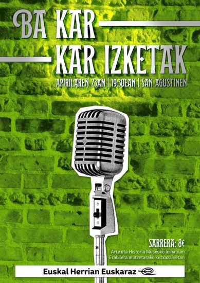 Durangoko Euskal Herriak Euskarazek Durangaldeko umoregile taldetxo bat bilduko duen Bakarrizketa saioa prestatu du datorren barikurako, hilak 23. Ekitaldia San Agustin Kultur Gunean izango da, arratsaldeko 19:30ean hasita.