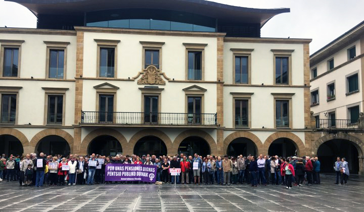 Los pensionistas de Bizkaia participaron ayer en la decimocuarta semana de protestas en demanda de unas pensiones dignas. Hubo concentraciones frente a los ayuntamientos de Amorebieta y Durango, y se leyó el comunicado acordado por los Movimientos de Pensionistas de Araba, Bizkaia Gipuzkoa y Nafarroa.