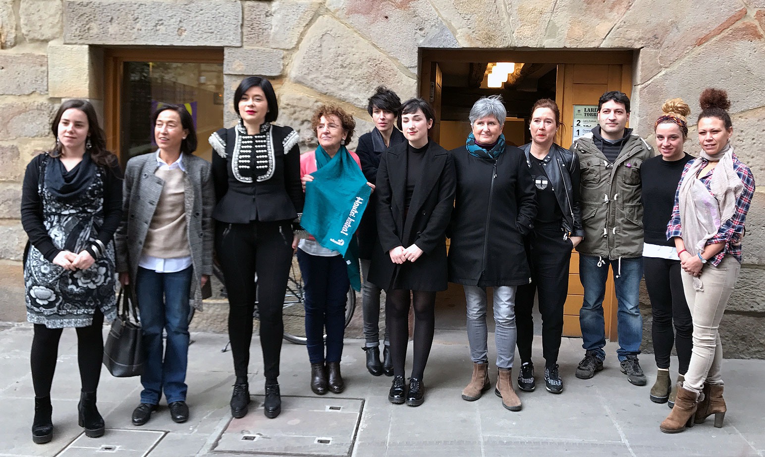 Idoia Bediaga, junto a integrantes de Andereak y del Consejo de Igualdad de Durango frente a Andragunea.