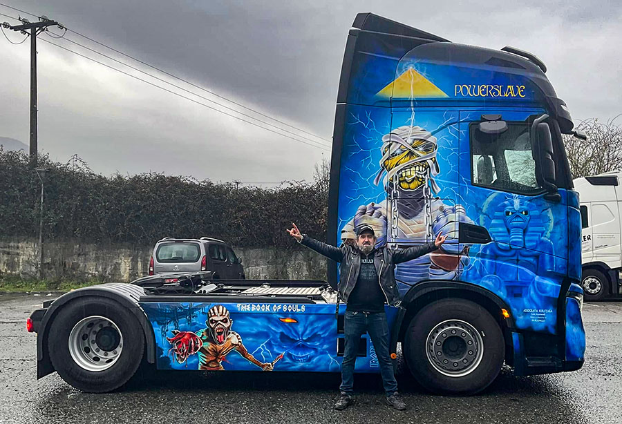 El heavy metal y el asfalto siempre se han llevado bien. Buena muestra de ello es el último trabajo de Juan Azurmendi, profesor de dibujo y pintura de la Academia Kurutziaga de Durango, que ha afrontado el reto de convertir un camión en un homenaje sobre ruedas a Iron Maiden.