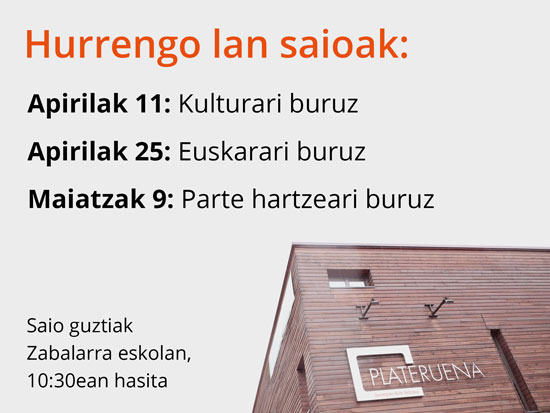 Plateruenaren etorkizuna bideratzen jarraitzeko helburuarekin, beste hiru bilera egingo dituzte datozen asteetan. Lehenengoa, zer da kultura eta zer den euskal kultura landuko duen monografikoa izango da; bigarrenean, euskara izango da hizpide eta erabilera zelan sustatu daiteken erabilera Plateruena bezalako gune batetik; eta hirugarren lan saioan, partehartzea eta langileen lana eta boluntarioena zelan orekatuko den jorratuko dute.
