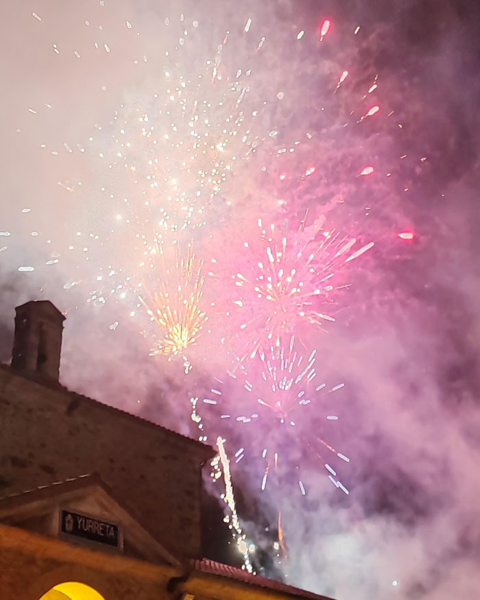 Burgalesa y residente en la localidad iurretarra, la fotógrafa reflejó en la imagen ganadora el colorido estallido de los fuegos artificiales nocturnos lanzados durante los pasados festejos.