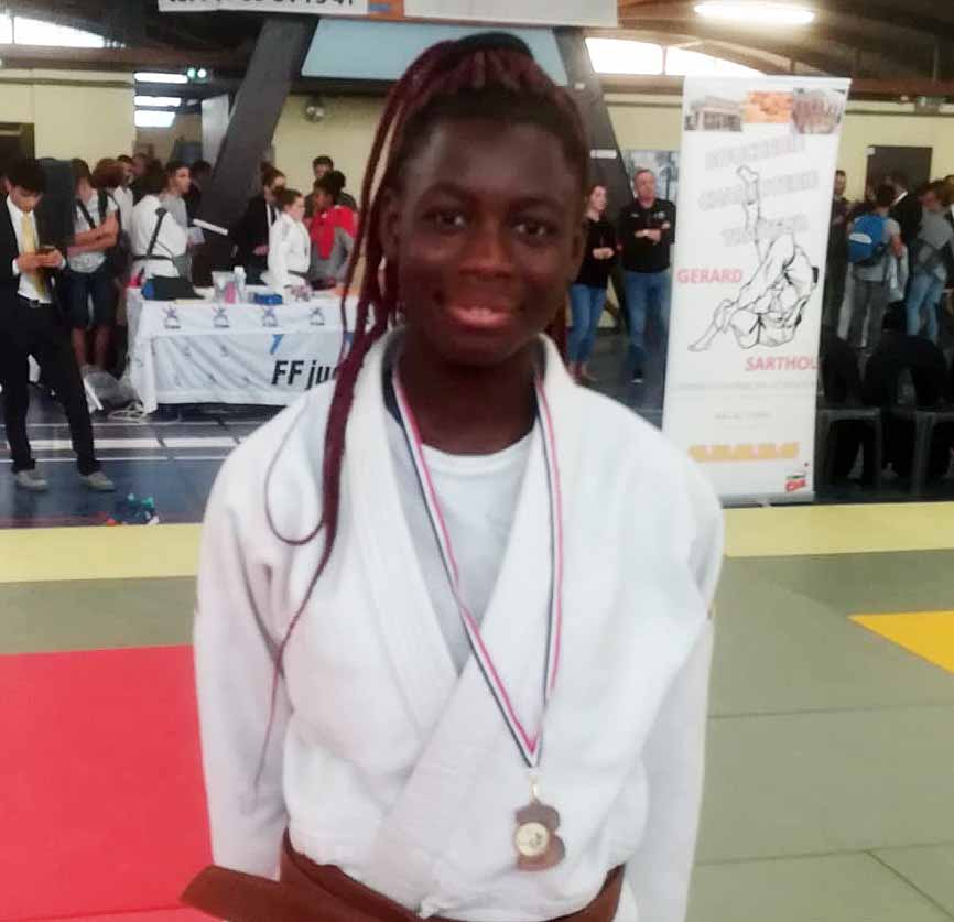 La joven judoka durangarra Deniba Konare logró el fin de semana una merecida medalla de bronce en el Torneo cadete Label B de Pau, prueba puntuable en Francia perteneciente a la Liga de Aquitania. Tomaron parte un total de 16 competidoras en la categoría de -52k que, en muchos casos, serán sus rivales este año en el circuito de Copas de España.