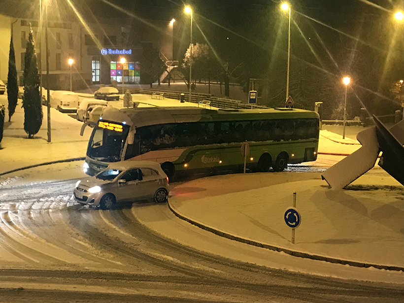 La nieve ha cuajado de forma importante en todo Durangaldea. La situación de las carreteras es complicada y desde el Departamento de Seguridad recomiendan evitar los desplazamientos en coche si no es imprescindible.
