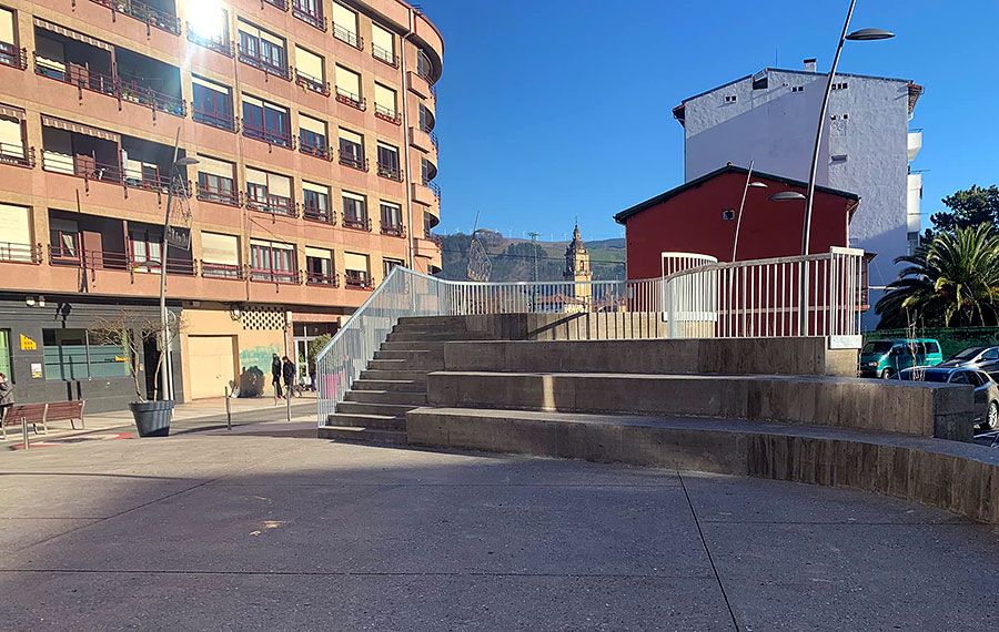 El anfiteatro se sitúa frente al portal 16 de Bixente Kapanaga y la parcela dotacional adjunta será la destinada a aparcamiento para residentes. Ante las cerca de 30 plazas nuevas, se ha iniciado la pertinente modificación de la ordenanza reguladora de OTA.