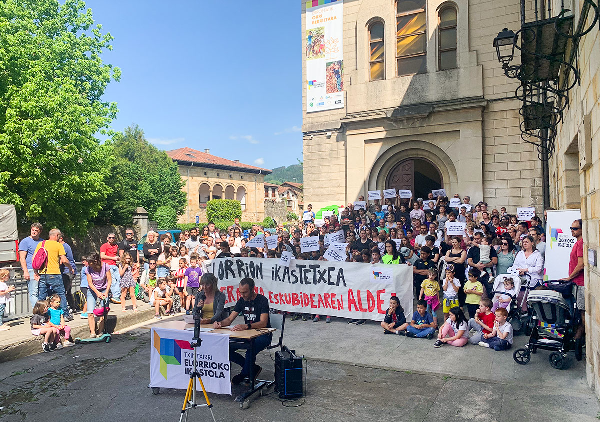 Al finalizar el acto, la comunidad educativa de Txintxirri demandó que se anule el traslado, que se respete la elección de centro, que se reconozcan los derechos del resto de familias, que se cancelen las reubicaciones previstas y que se cree una Mesa de Educación Local con representación institucional y de todos los centros escolares de Elorrio.