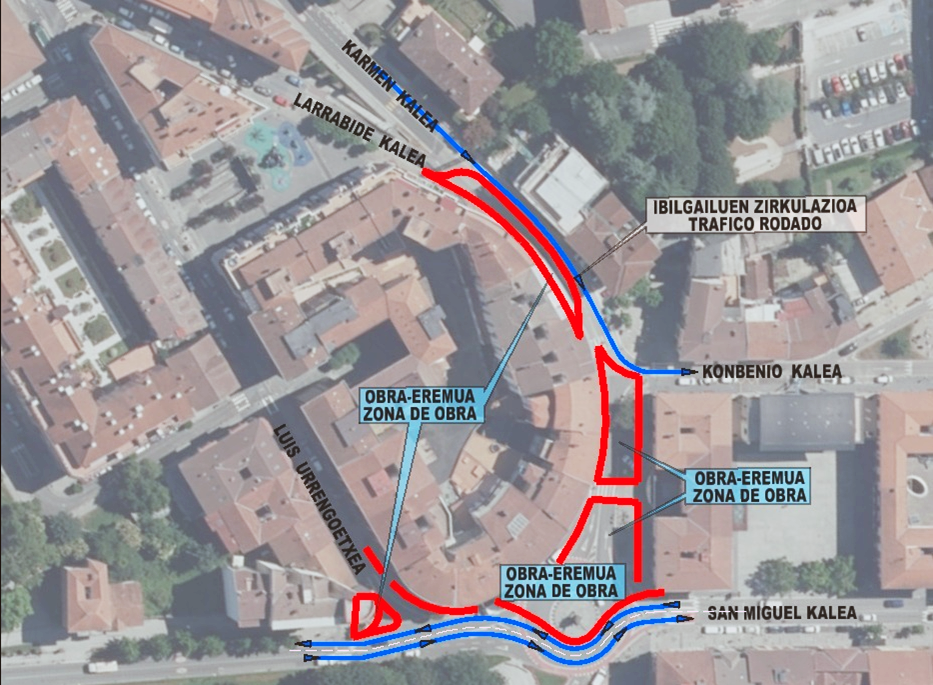 Las obras de peatonalización de la calle Karmen provocan cambios circulatorios en ‘La Patata’
