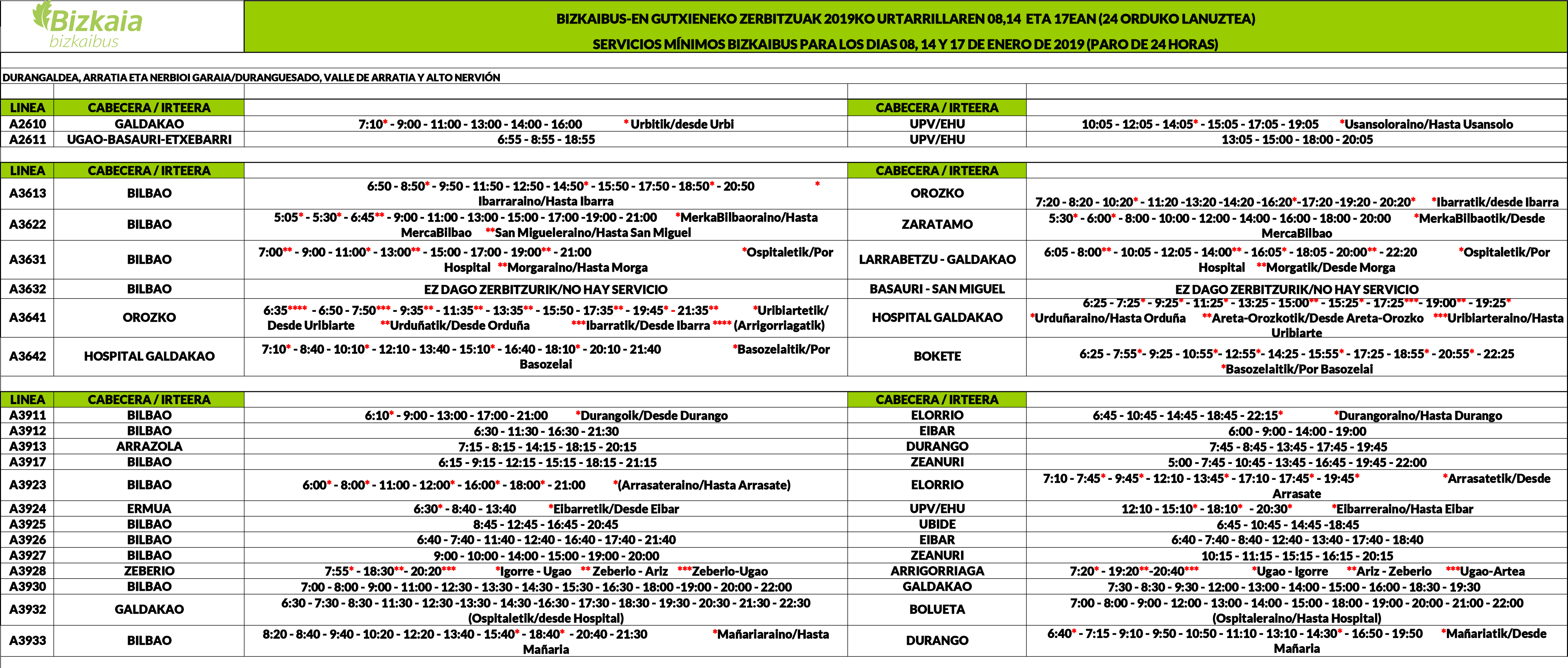 Representantes sindicales han destacado que, en el caso de Bizkaibus, no hay prevista ninguna reunión en las próximas horas para negociar el convenio, que venció en diciembre de 2017. Por lo tanto, las expectativas de una pronta solución a este conflicto laboral son escasas.