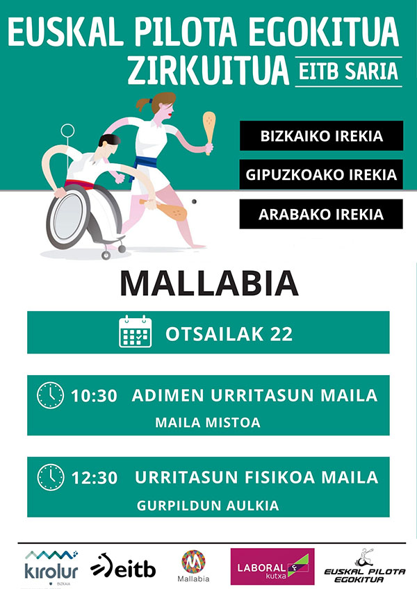 Datorren otsailaren 22an, igandea, Mallabiko frontoia izango da Euskal Pilota Egokituaren Zirkuituko jardunaldiaren lekuko.