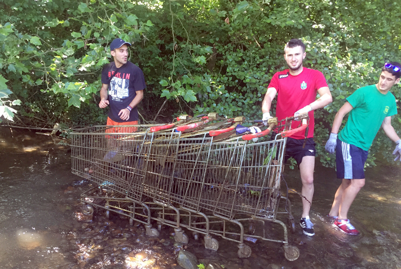 Matienako Gazte Asanbladako kideek auzo erdialdean utzi zuten Zaldua errekan batutako zaborra