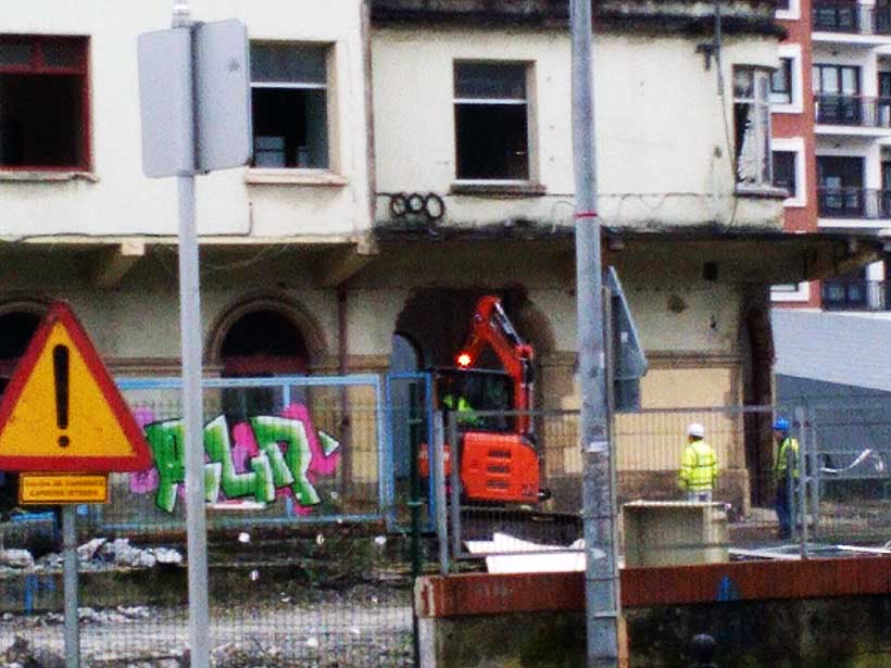 Tal y como puede apreciarse en la foto de esta tarde que nos ha enviado un lector, ha comenzado definitivamente el derribo del edificio que albergaba la antigua estación de Durango. EH Bildu y Herriaren Eskubidea solicitaron hace cinco días que se paralizara la demolición por dos motivos: por un lado, para que fuera la ciudadanía la que decidiera qué hacer con este inmueble y, por otro, para que pudiera resolverse antes el expediente de Patrimonio del Gobierno vasco.