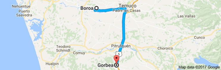 Wallmapun, maputxeen herrian, Boroatik Gorbeara joateko ordu bete bat behar da, kotxez. 64 kilometro dira. Gorbea izena euskaldun bati zor dio herriak, antza. Horrela kontatu dit “Gorbea” mermelada gozoak egiten dituen herritar batek.